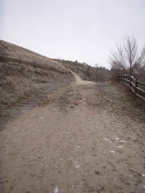 you can see that i wasn't picking up mud on this part of the trail. i did, however, have to go through some puddles and my feet got wet. stepping off trail to avoid water, mud or ice causes widening. if you're not willing to go through, turn around. i watched this happen several times today.